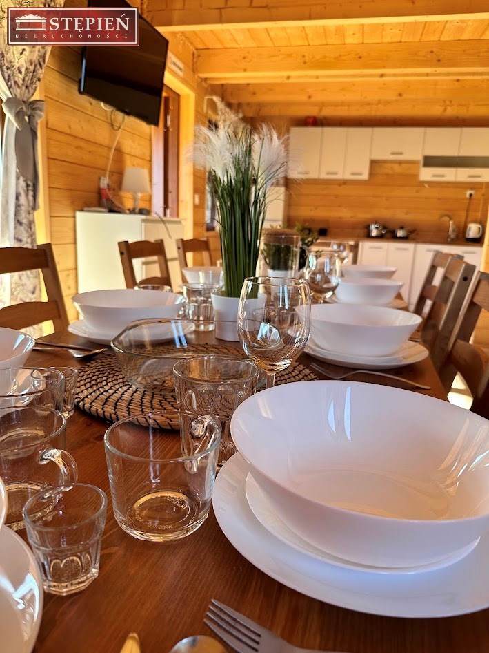 Na ogrodzonej i doskonale utrzymanej działce o powierzchni 1065 m² położony jest nowoczesny, drewniany bliźniak – dwa niezależne, w pełni wyposażone domki gotowe do wynajmu o łącznej powierzchni użytkowej około 170 m², posiadający status mieszkalny.