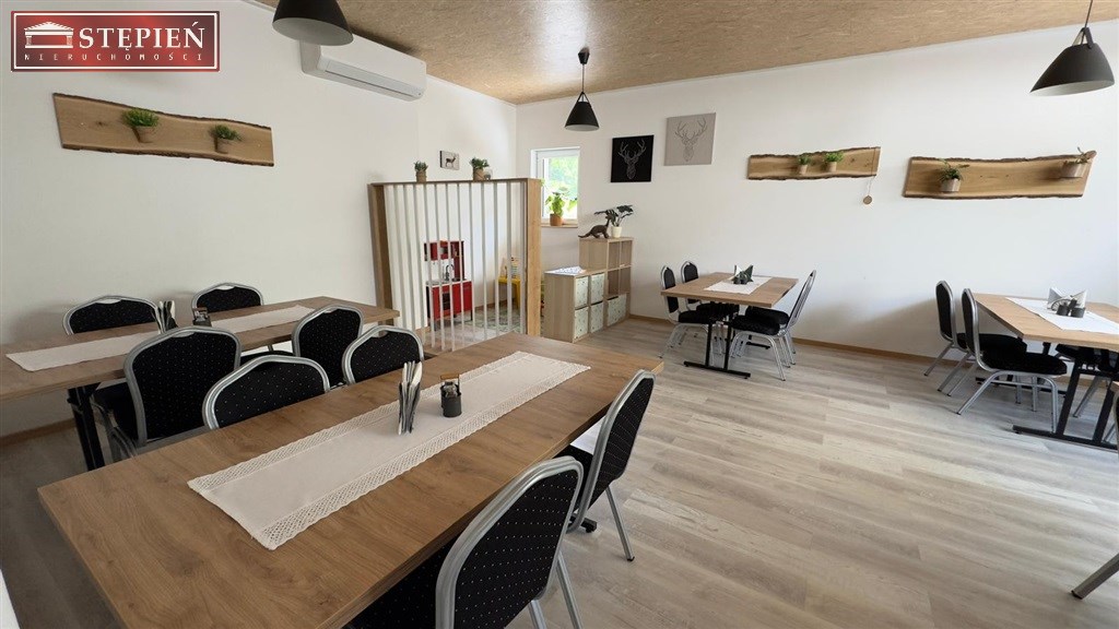bar z częścią restauracyjną na ok. 40 osób z tarasem w pełni przygotowany do prowadzenia działalności gastronomicznej, całkowicie umeblowany.