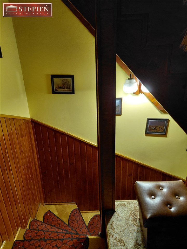 - holl, z którego prowadzą drewniane schody na piętro.
