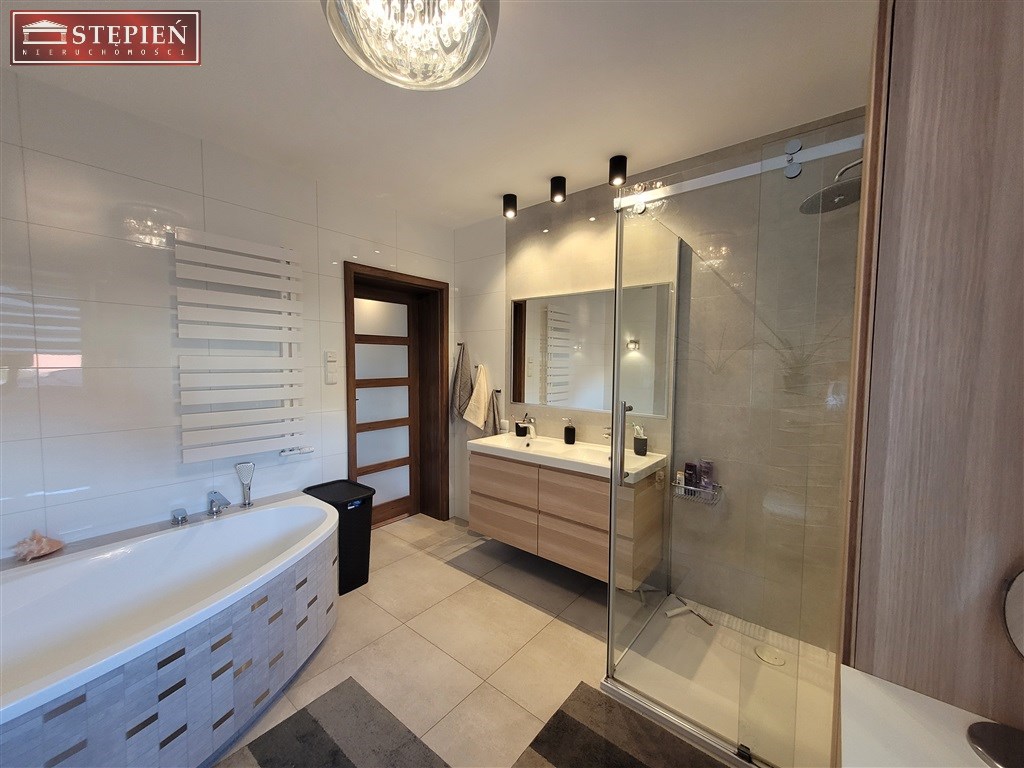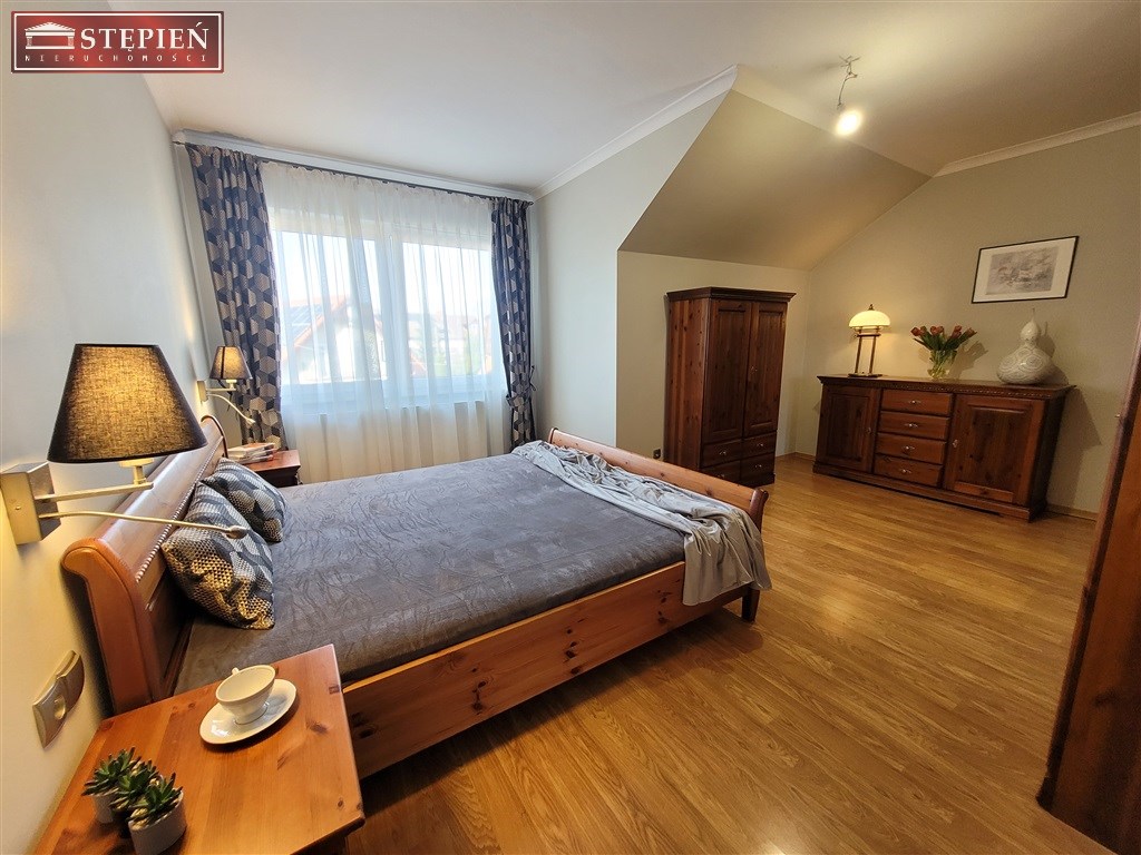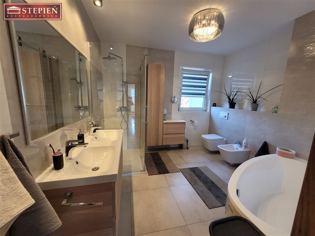 Na trzecim piętrze znajdują się pralnia oraz suszarnia, które dodatkowo ułatwiają codzienne obowiązki. Wnętrza domu urządzone są w eleganckim stylu, z dbałością o detale, co nadaje im niepowtarzalny urok i przytulność. Parkiet, kafle oraz dębowe schody dodają wnętrzom prestiżu oraz klasy.