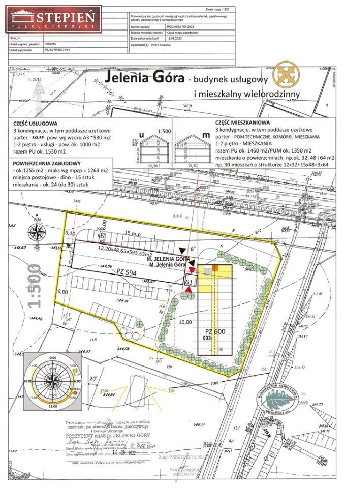 - pierwszy usługowy - PU ok. 1530 m2
