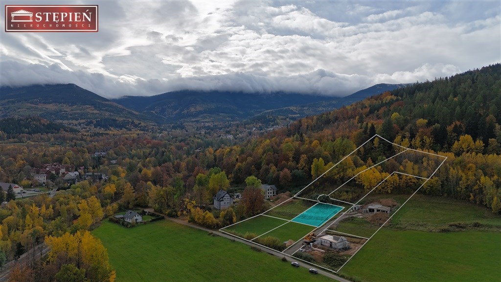 Sąsiadująca z Brzeziem Karkonoskim,w cichej, zielonej okolicy, teren działki lekko pochyły,