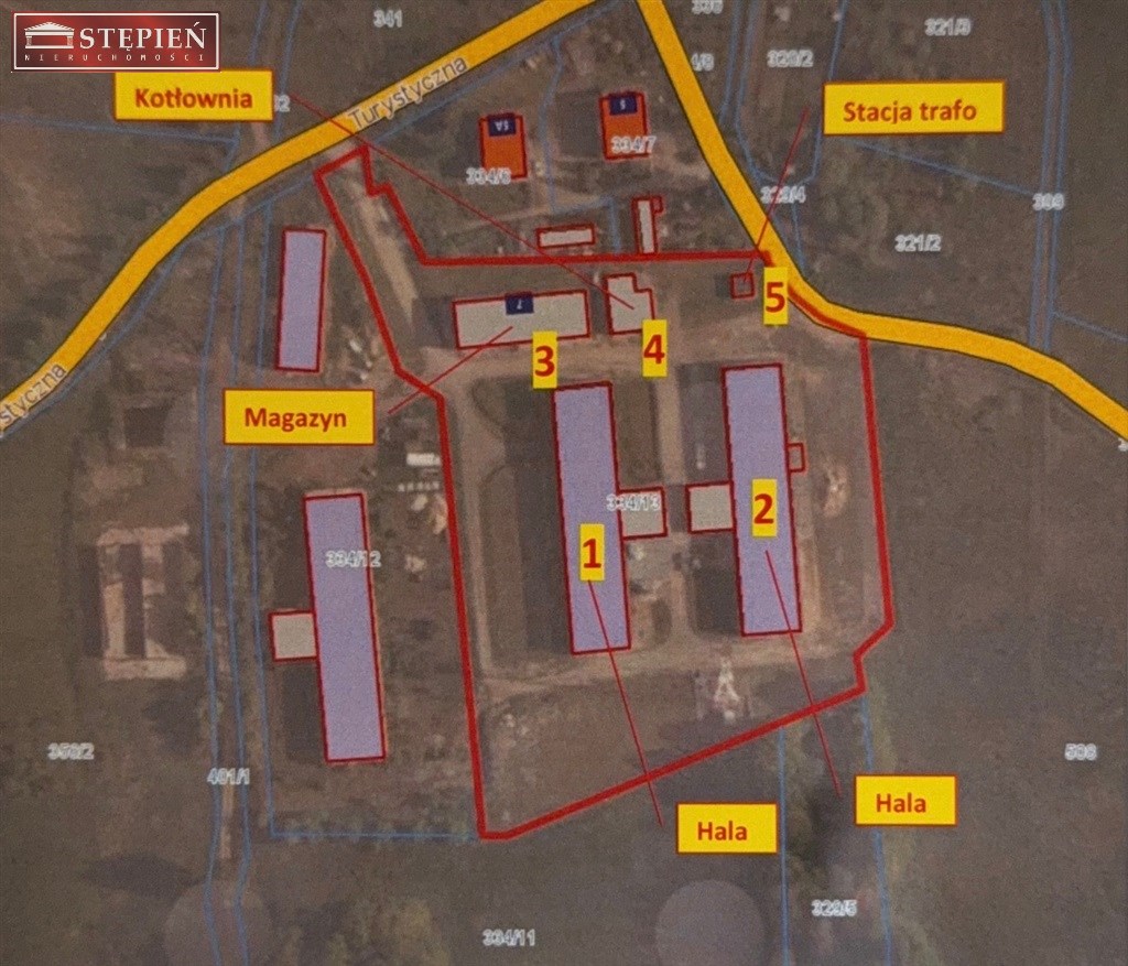 Budynki zlokalizowane na działce na działce o powierzchni 1,6370 ha położonej w miejscowości Karpniki ulicy Turystycznej 7, gmina Mysłakowice, powiat jeleniogórski, działka nr 334/15 na obszarze zabudowy usługowo – produkcyjnej i mieszkaniowej.