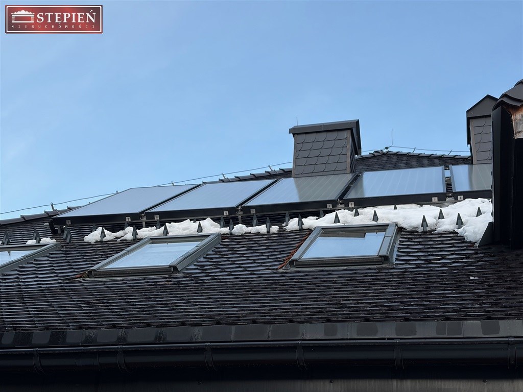 Budynek wyposażony jest w trzy niezależne systemy ogrzewania: gazowe, kominkowe z rozprowadzeniem do bojlerów na ciepłą wodę użytkową oraz instalację fotowoltaiczną zamontowaną na dachu. Elewacja wykończona drewnem podkreśla górski charakter nieruchomości.