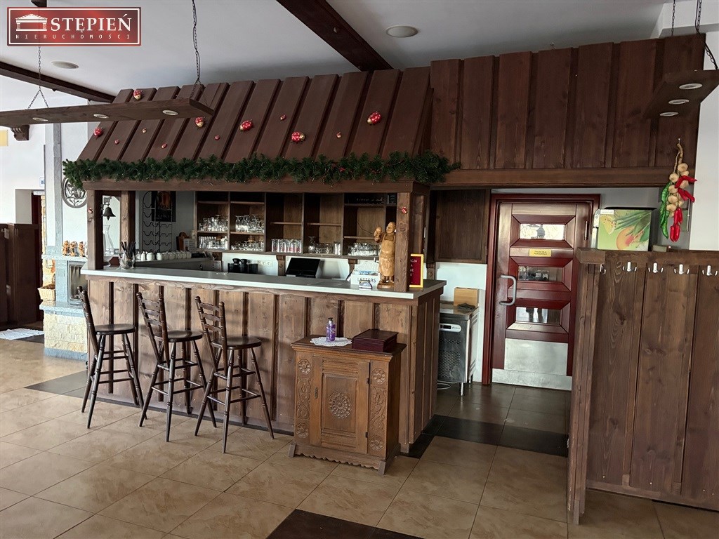 Na parterze znajduje się przestronna sala restauracyjna z barem, przystosowana do obsługi około 60 gości. Z sali prowadzi wyjście na taras z malowniczym widokiem na panoramę gór. Część gastronomiczna obejmuje w pełni funkcjonalne zaplecze kuchenne wraz z pomieszczeniami pomocniczymi: dwoma magazynami, zmywalnią oraz zapleczem socjalnym dla personelu z łazienką i toaletą.