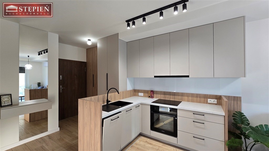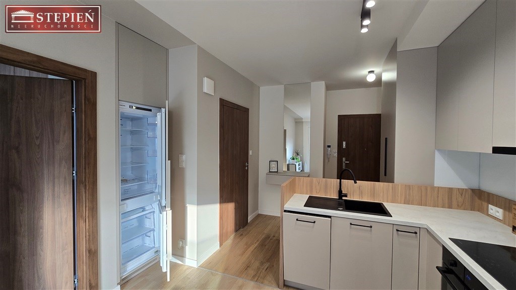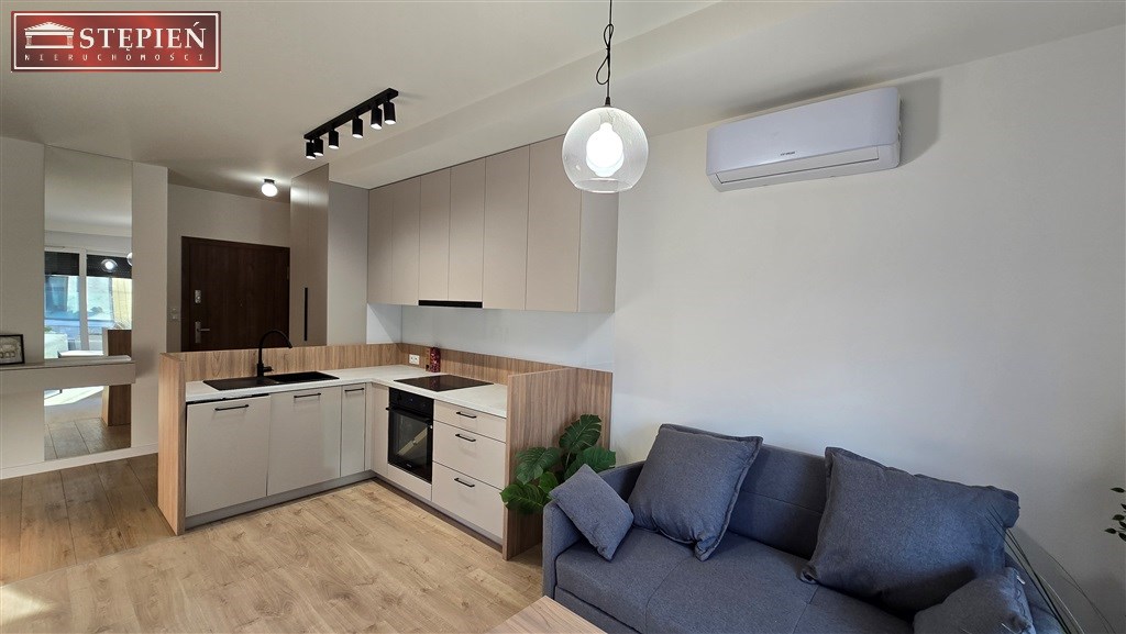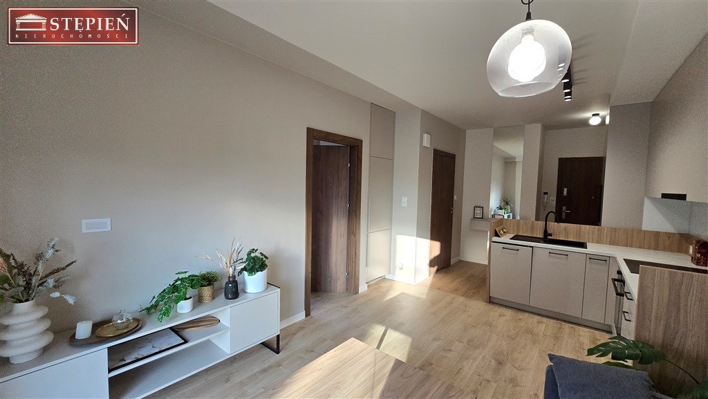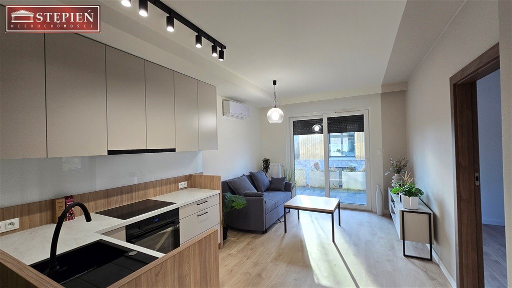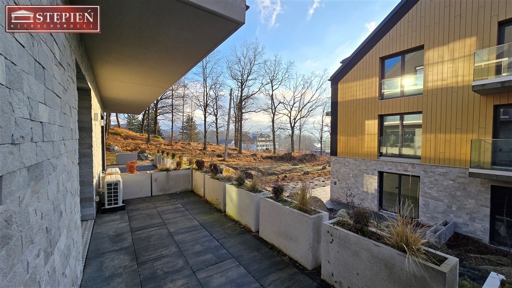 Mieszkanie znajduje się na parterze budynku. Powierzchnia 37,1 m2 obejmuje salon z wyjściem na taras, z którego rozpościera się widok na góry i park ze starodrzewem. Gustowny salon łączy się z praktycznie urządzonym aneksem kuchennym. Obok salonu znajduje się klimatyczna sypialnia, następnie łazienka z prysznicem i pełną zabudową. W przedpokoju wykonano przestronną garderobę.