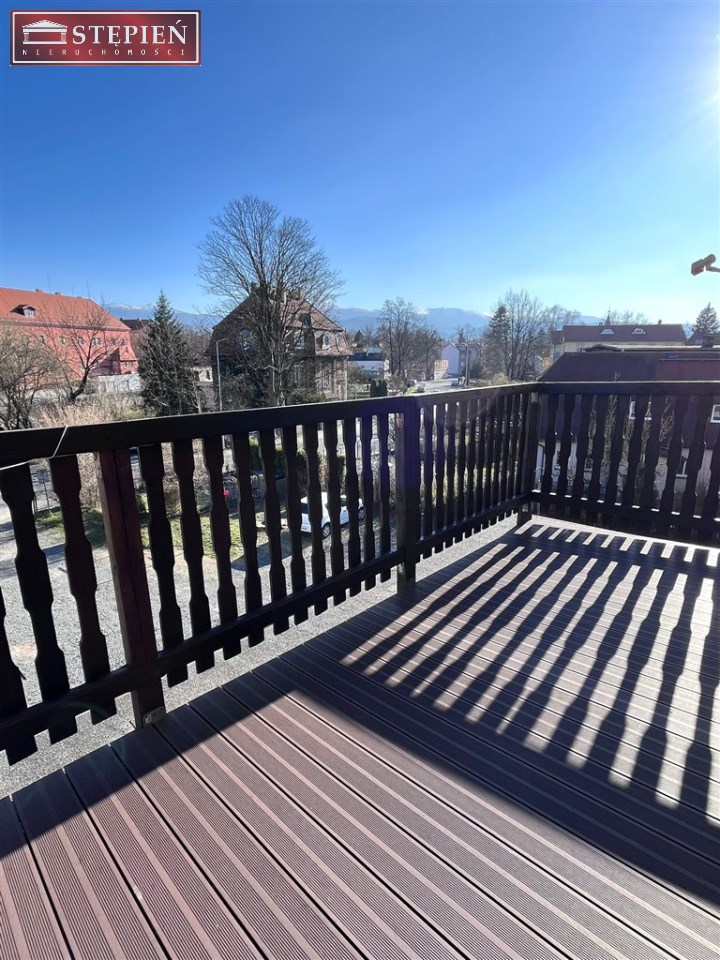 Taras: Duży słoneczny z meblami tarasowymi oraz południową ekspozycją na piękną panoramę Karkonoszy.