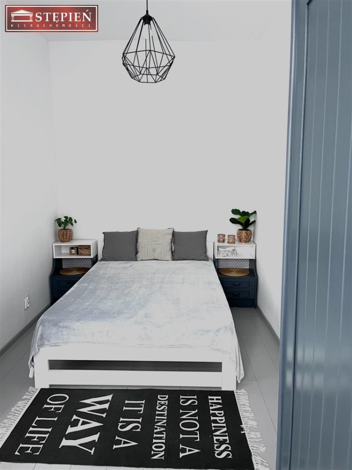 Sypialnia: wygodne łóżko z 9 warstwowym materacem, stoliki nocne i szafa z komodą.