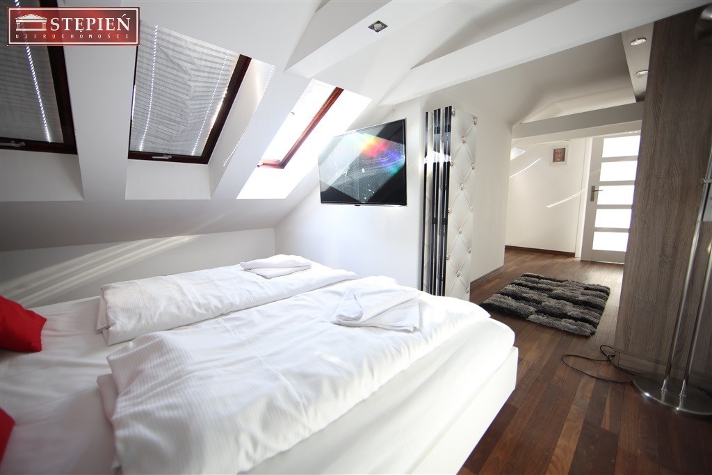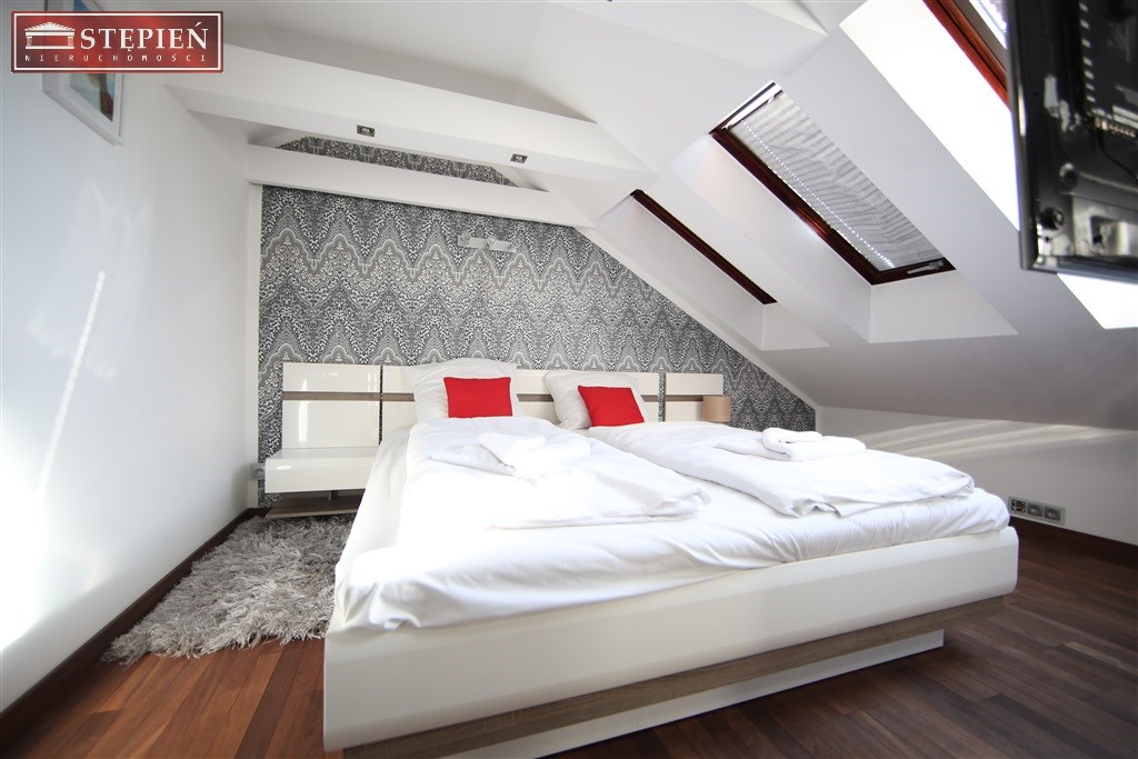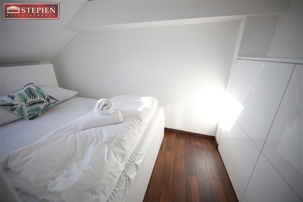 Przedstawiamy Państwu nowoczesny, dwupoziomowy apartament w ofercie na wynajem, zlokalizowany w ścisłym centrum Jeleniej Góry przy ulicy Kopernika, w pobliżu Placu Ratuszowego, bazyliki św. Erazma i Pankracego, Galerii Sudeckiej, a także licznych sklepów i restauracji starego miasta. Wykończony w wysokim standardzie, zapewnia funkcjonalną, komfortową przestrzeń mieszkalną. Powierzchnia mierzona "po podłodze" znacznie przewyższa powierzchnię użytkową.Na dolnym poziomie apartamentu znajdują się: